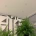 pó de carvão sobre parede e samambaias plantadas em vasos e pratos de plástico e cabo de aço